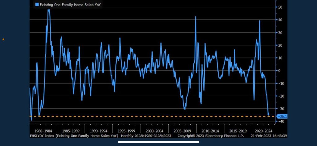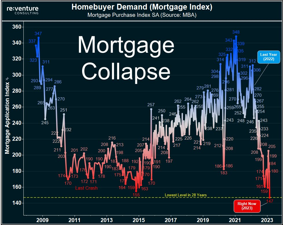 接下来是下一个发展:房地产市场。房地产市场一片混乱——我们都看到了那些令人震惊的图表,显示销售额已经跌至几十年来的最低点。
