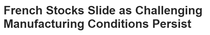 例如,由于制造业面临的困境持续不断,法国的股票市场出现下滑。法国的采购经理人指数(PMI)已经下降到四个月的低点。最近,法国刚刚逃过一次衰退,因为经济增长了0.1%。法国制造业的PMI从50.5下降到47.1。德国的制造业指数也下降到46.5。