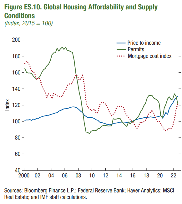 尽管大型新兴市场迄今已经设法应对发达经济体的货币政策收紧,但如果金融市场的当前压力持续,他们可能面临重大挑战,导致资本外流。全球各地的主权债务可持续性指标继续恶化,特别是在前沿和低收入国家,其中许多最脆弱的国家面临严重压力。此外,家庭在大流行病期间积累了大量储蓄,现在面临更重的债务偿还负担,侵蚀他们的储蓄,使他们更容易违约。住房抵押贷款利率的大幅上升也冷却了全球的住房需求,拥有更大份额的可调利率抵押贷款的经济体实际价格下降最大。小企业和新兴市场公司可能会受到更大的负面影响,因为他们缺乏银行贷款以外的融资来源,而这些贷款的标准已经开始收紧。