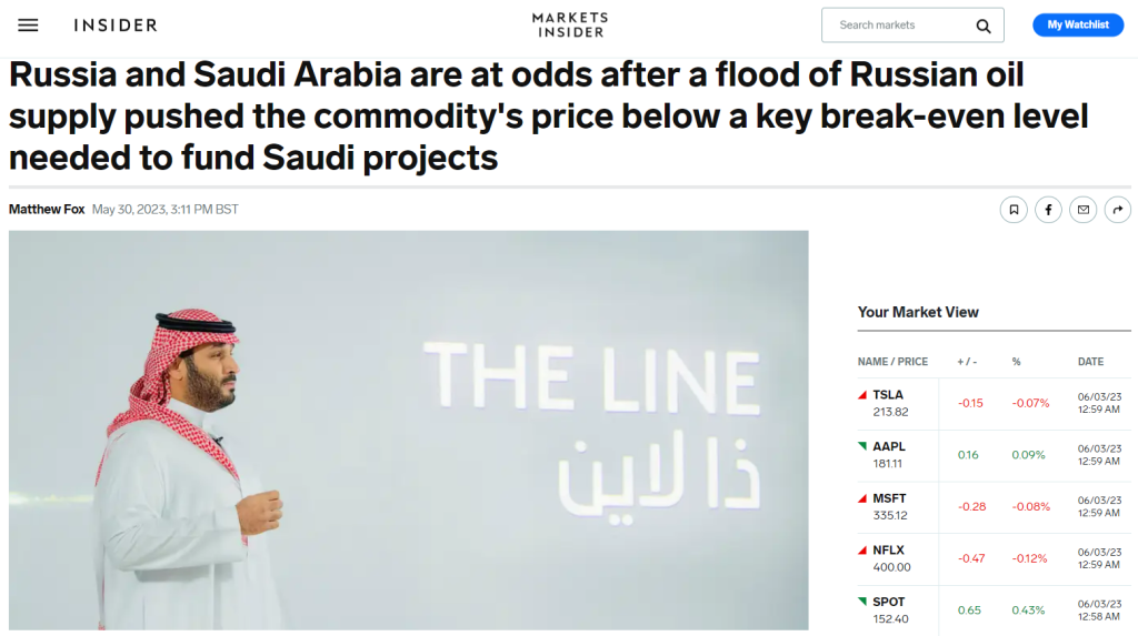 沙特阿拉伯似乎对俄罗斯感到不悦,因为后者持续高额的出口和未能遵守每日减产50万桶的承诺,正在给石油价格带来下行压力,这与王国的大型/超大型项目不符。