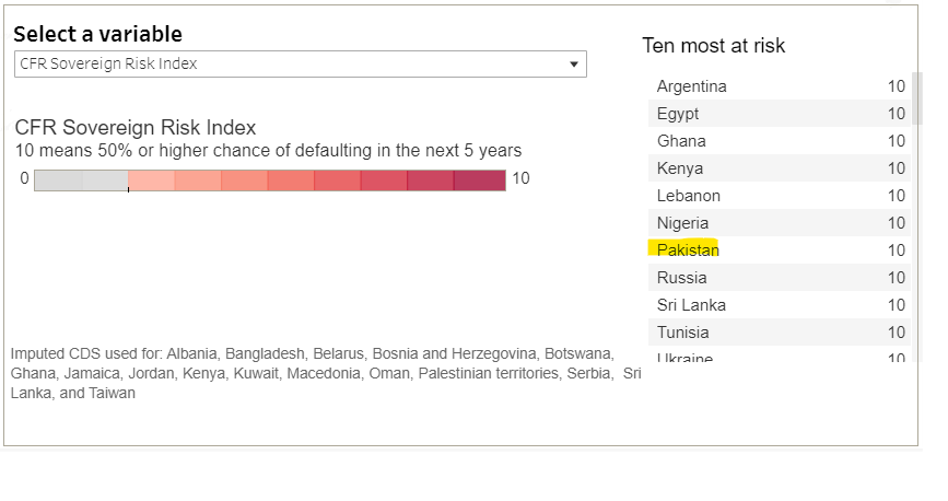 巴基斯坦官方的通胀数据显示,12月份的通胀率为24.5%,比上个月的26.6%有所改善。然而,食品通胀率与去年相比已经上涨了35%。在这个食品篮子中,有些商品的价格上涨了超过100%,比如洋葱的价格上涨了415%!而小麦的价格上涨了57.3%,鸡蛋的价格上涨了54.4%,大米的价格上涨了47%。最近的洪水使得全国三分之一的土地被淹没,摧毁了巴基斯坦400万英亩的农作物,使得食品价格通胀进一步加剧。总的来说,这次灾难对经济的影响估计为350亿美元。此外,该国的政治不稳定性将继续困扰经济增长。CFR的主权风险追踪器将巴基斯坦的排名定为10,意味着它处于最高的不稳定风险中。