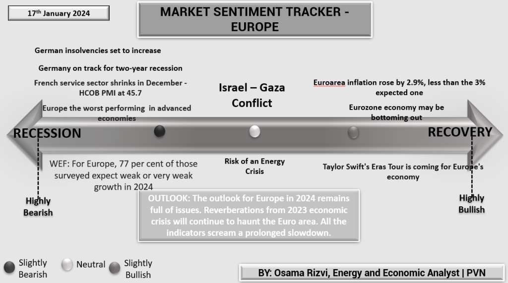 欧洲:在持续的挑战中寻求稳定 欧洲的经济情绪与上周基本保持不变,对于长期经济放缓的预期依然存在。德国面临着两年的经济衰退的前景,法国的服务业正在收缩,整体上欧洲落后于其先进经济体的同行。欧元区通胀的轻微缓解带来了一线希望,但对2024年经济增长疲弱的预期表明,前方的道路充满挑战。