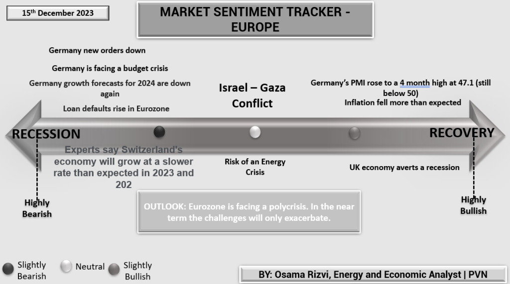 截至2023年12月15日的欧洲市场情绪追踪器对该地区的经济健康状况持谨慎态度。