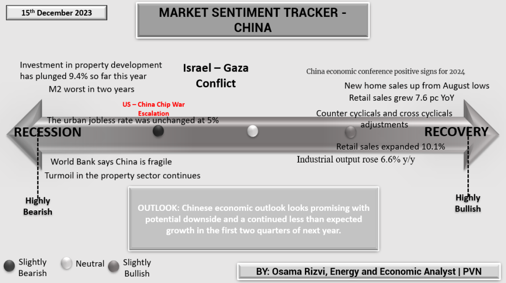 截至2023年12月15日的中国市场情绪追踪器描绘了经济问题和增长的双重叙述。