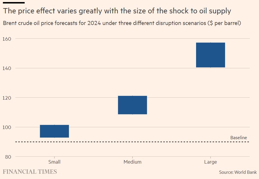 - 小幅中断:每天减少高达200万桶(占世界供应的2%)。预计油价:93-102美元。