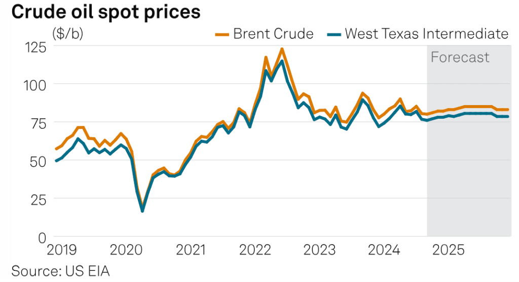 能源市场分析师 Gaurav Sharma 也同意上述判断。他表示:“我对油价会升至 100 美元持高度怀疑态度,尽管短期上行压力可能会持续,直到以色列对伊朗的回应明朗化。过去一周 Brent 原油期货在经历近期上涨后又下跌,显示出 80 美元以上的价格会遭遇强阻力。这是因为全球需求前景不明,加上轻质低硫原油的供应过剩等因素,仍在压制油价。”