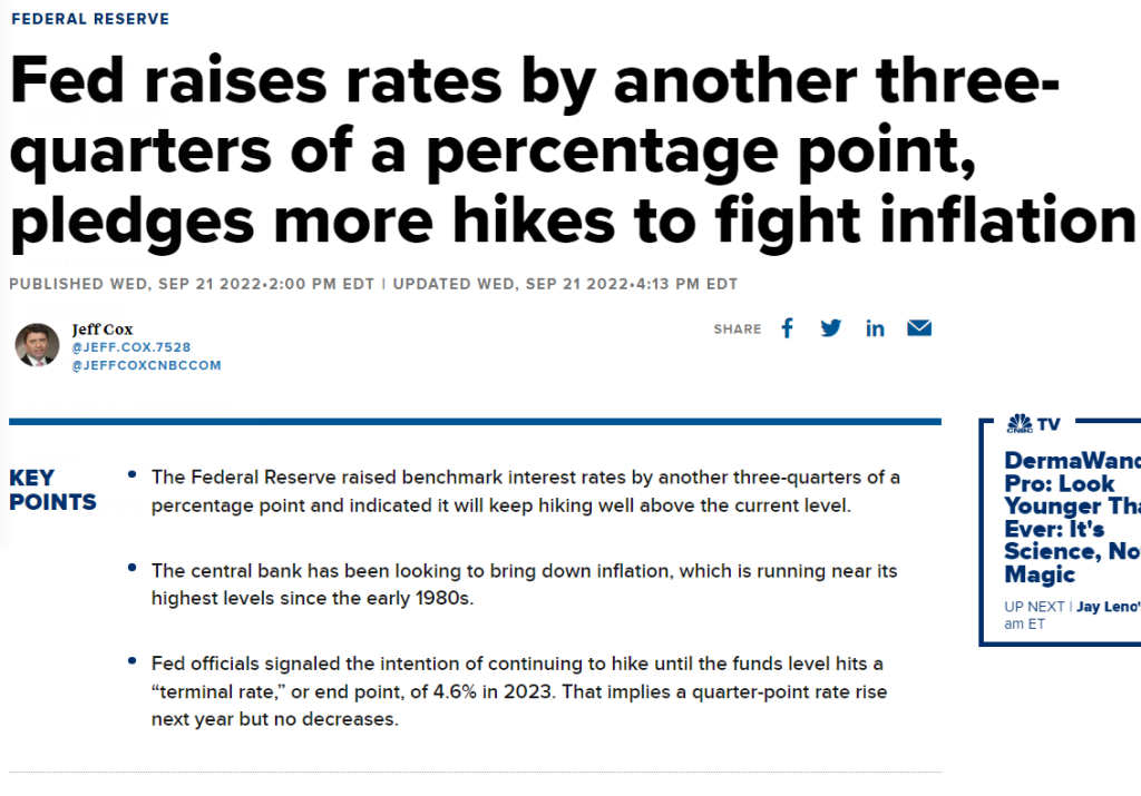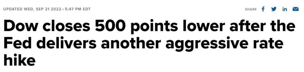尽管预料之中,市场仍然有所反应。在利率再次上调75个基点后,股市反应强烈:道琼斯指数下跌522点,纳斯达克和标普500指数分别下跌1.79%和1.71%。